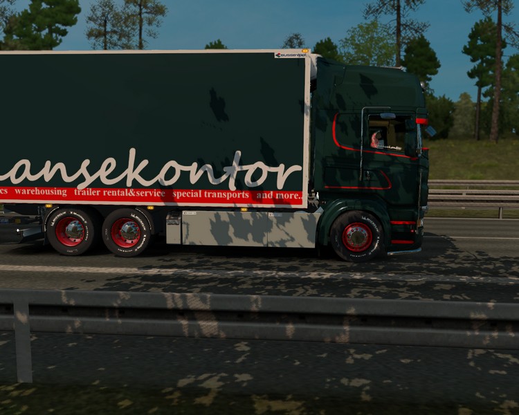 Die Paletten sind schnell verladen. Sandra zieht den Scania von der Rampe und ich schließe die Laderraumtüren. Kurz darauf ist der Anhänger angekuppelt und das Spiel mit den Türen wiederholt sich.