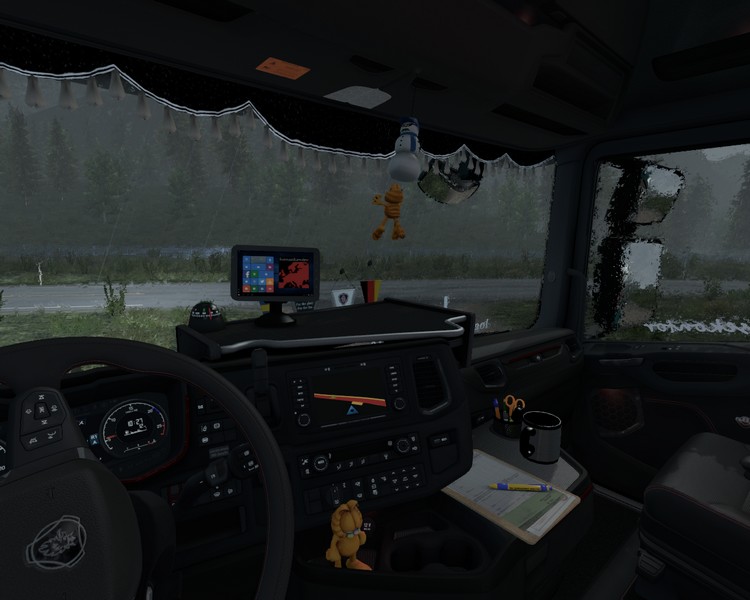 Es ist kurz vor 05:00 Uhr. Ich habe die Abfahrtskontrolle erledigt und schließe die Dannys Halle ab. Ein Blick zum Volvo, dann klettere ich in meinen Scania und fahre auf den Vilbergveien. Einen Moment später biege ich nach rechts auf den Kampheimveie; fahre vorbei an einer Ladestation für Elektrofahrzeuge. Es fängt an zu nieseln und ich schalte den Scheibenwischer ein. Hellerudveien. Trassopveien. Ytre Ringvei. Haugerundhagan. Es folgen noch ein paar Straßen bis ich an einen Kreisverkehr komme. Ich folge den Schildern in Richtung Trondheim auf die E6. Aus Nieseln ist inzwischen Regen geworden.