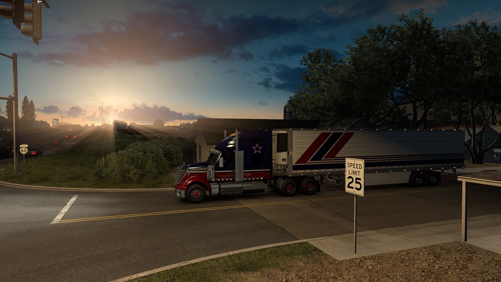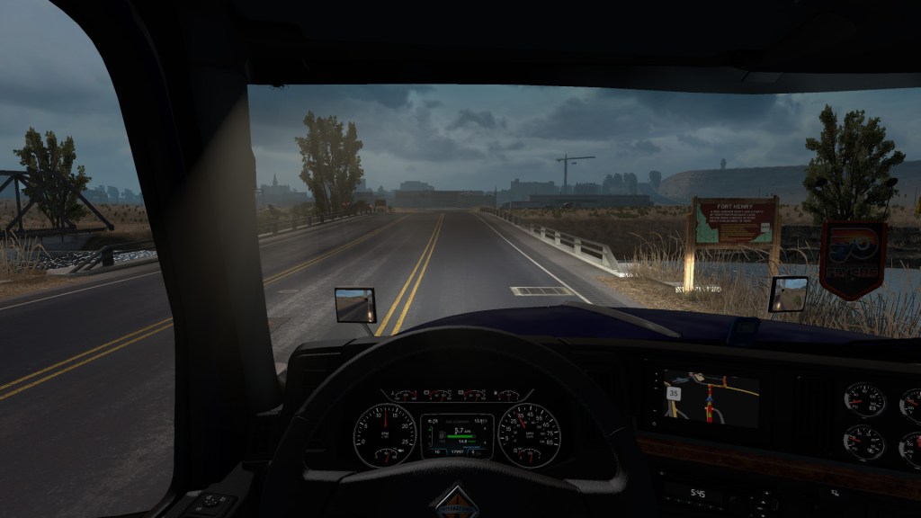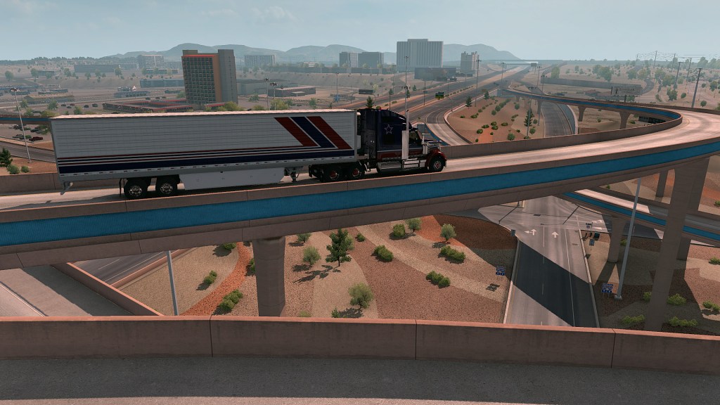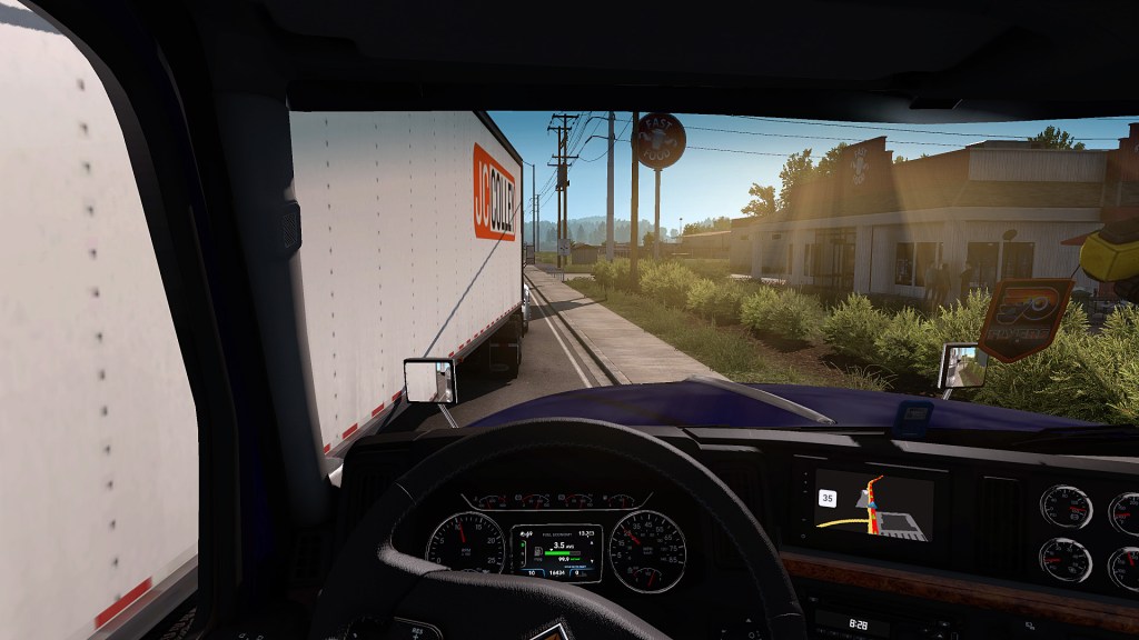Also schlug ich mich zum unter Truckern nur mäßig beliebten Maverik Adventure’s Truck Stop durch. Das Abenteuer bestand wohl vor allem darin, den chronisch geschlossenen Bahnübergang an der California Avenue zu überwinden. Auch heute kamen erst mal zwei Züge an die Reihe und dann ich. Und auch das vor allem, weil ich einfach aufs Gas gelatscht war und per Kickdown durchgezogen hatte. Als ich mit dem Fahrerhaus auf der anderen Seite war, ging das Läutwerk schon wieder an und im Rückspiegel sah ich die Schranken wieder schließen.