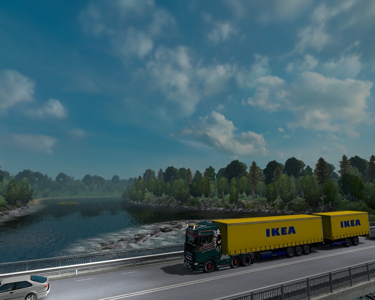 Wie abgesprochen brauchte ich beim IKEA nur den vorgeladenen Auflieger aufsatteln. Abfahrtskontrolle und dann ‚Full kraft framåt‘. Über die E4 geht es südwärts; vorbei an Stockholm, Nyköping, Norrköping und Norsholm.