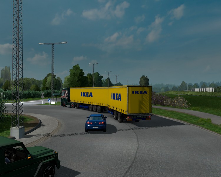 Trafikplats Linköping Norra. Ich verlasse die E4. Dann folgen bis zum IKEA-Markt zwei Kreisverkehre. Hinter mir hupt es und ich kann nur mit dem Kopf schütteln. Schon mit einem Standardauflieger sind die Kreisverkehre mit Vorsicht zu genießen. Mit einem B-Double erst recht.