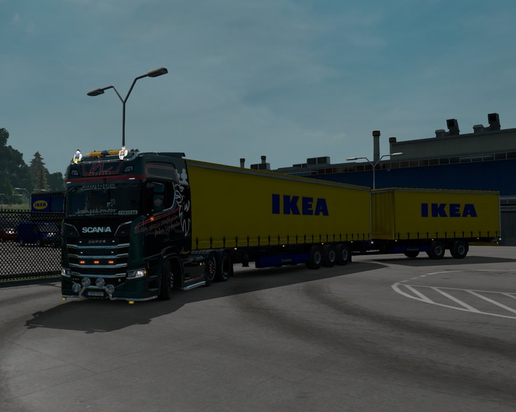 Ich fahre auf den Hof und stelle den Zug erst einmal an die Seite. Im Büro treffe ich auf eine Frau, die sich als Linnea Mejer vorstellt. ”Christian Dansör vom hansekontor.” ”Ah, sehr schön – die Tour aus Uppsala. Den Trailer stellen Sie bitte hinten an den Paletten an die Seite. Ihre Rücktour ist bereits fertig geladen.” Sie beschreibt mir wo ich den Trailer finde; wiederum wie besprochen ein B-Double. ”Mhm, alles klar. Bevor ich zurück fahre muss ich aber erst noch Pause machen.“ „Kein Problem. Sie können ja oben bei uns im Restaurant essen gehen. Oder sie gehen rüber ins i-huset zu ‚chili&wok‘, der hat gerade um 10:00 Uhr geöffnet.“