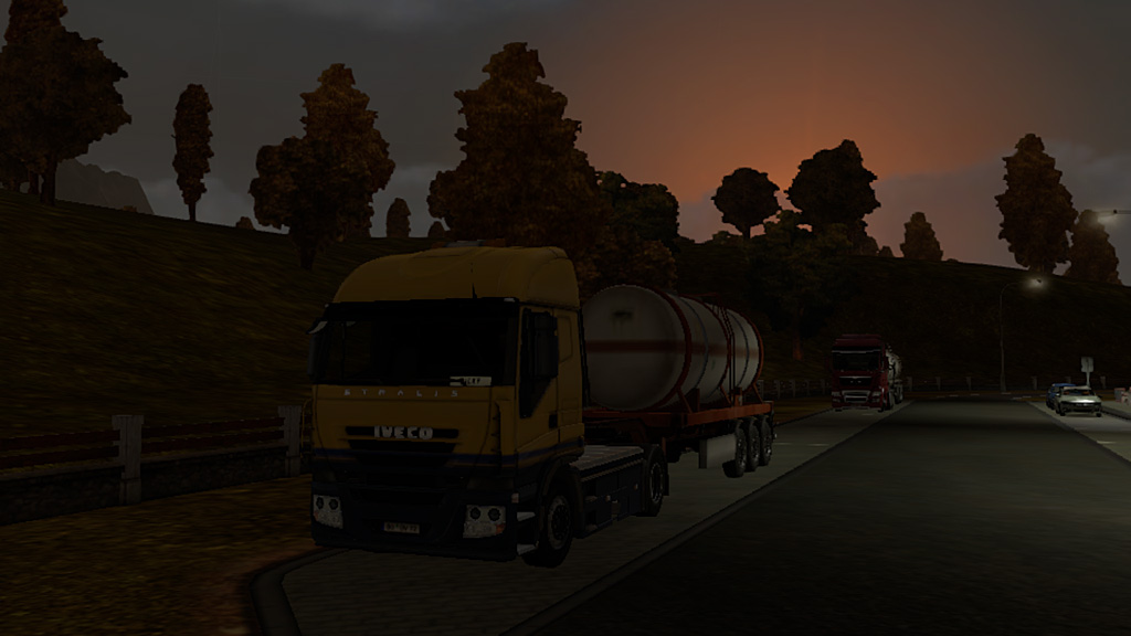 Bis zur Schlafpause kam ich kurz vor die Schweizer Grenze, hatte aber auch schon den ersten Tag mit verlängerter Lenkzeit ziehen müssen. Am nächsten Vormittag kam ich, immer noch im Regen, durch die Schweiz und machte hinter Genf Pause an der Grenze nach Frankreich. Am Nachmittag ging es weiter, bis ich in einer Kleinstadt abseits der Hauptstraße in einem Gewerbepark übernachtete.