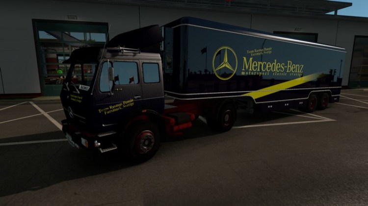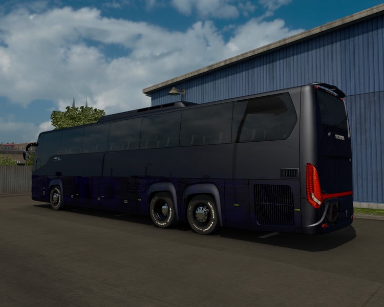 Der erste von vier Scania Touring ist inzwischen bei uns auf dem Hof. Besser gesagt hat Rasmus ihn am kleinen Lagergebäude quer auf die PKW-Stellflächen geparkt.