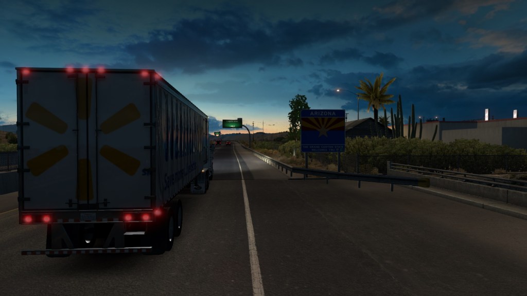 Kurz vor Barstow wechselte ich dann wieder auf die Interstate 15. Dann ging es an Barstow vorbei. Nun begann für mich wieder Neuland. Kurz hinter Barstow begann dann die bekannte Interstate 40. Da die I-15 weiter in Richtung Las Vegas führte, wechselte ich dann auf die I-40, die mich dann nach Arizona führen sollte. Obwohl diese Straße eine der wichtigsten Ost – West Verbindungen in den USA ist, hielt sich der Verkehr in dieser Nacht in Grenzen. Ich konnte ganz entspannt fahren und bekam dabei schonmal ein wenig Long Hauler Feeling. Während der Morgendämmerung überquerte ich dann die Staatsgrenze nach Arizona.