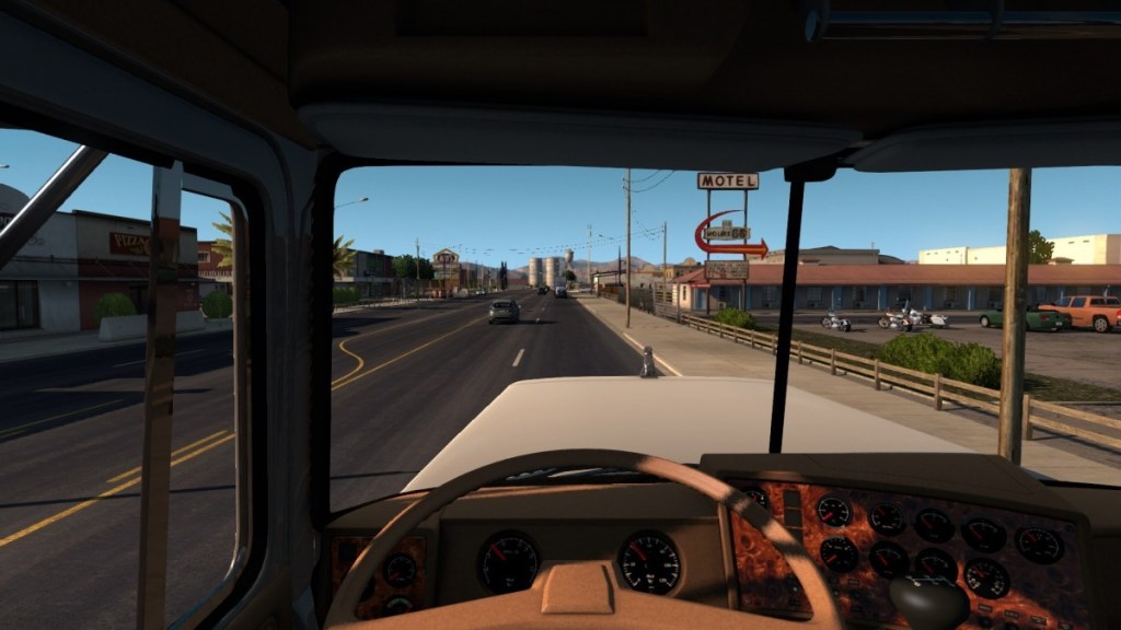 Als ich dann das Lager erreichte, hatte ich dann auch wirklich kaum noch Fahrzeit für die Woche über. Zu meinem Glück musste ich dann den Trailer auch noch wieder in die hinterste Ecke des Lagers setzen, wo sich eben die Müllpresse für die Altverpackungen befand. Anschließend meldete ich mich dann eben bei Charlie aus, der diese Woche wieder Frühschicht hatte. Dann fuhr ich mit meiner Zugmaschine in die kleine Stadt hinein. Schließlich fand ich dann quasi auf die letzte Minute das, was ich gesucht hatte. Ein Motel, wo ich dann meine Pause verbringen konnte.
