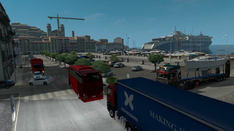 Vor der Ausfahrt des Jachthafens staut es sich und der rote MAN aus dem Hause Bosmann steht natürlich so, dass ich nicht nach links weg komme. Es tut mir leid, Pocahonthas. Ähm ja; vielleicht. Das nächste Lied im Radio startet – Rammstein mit Zerstören. Ich greife zur Kaffeetasse während im Stau vor der Einfahrt etwas Bewegung kommt. Der PKW der hinter dem MAN steht lässt mich raus. Ich taste mich langsam vor und zirkel meinen Zug auf die Corso Alcide de Gasperi. Der Stau auf der Gegenspur geht bis über die Traversa Varo, in die ich jetzt einbiege, hinaus. Im Radio ertönt plötzlich irgendein italienscher Schlager. Was ist das heute für eine Musikmischung. Mit welchem Fuß ist der Radiomoderator aufgestanden? Ich stelle mein Radio um auf meinen USB-Stick. Ein kraftvolles Elektomixtape erklingt. Schon besser.