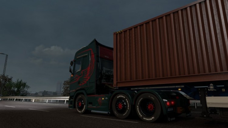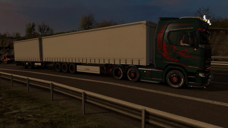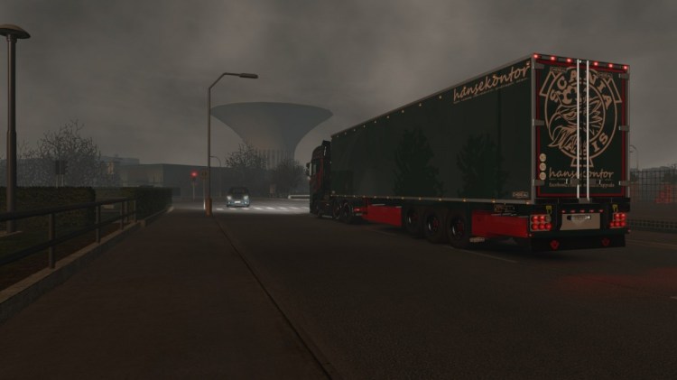 Ich hole mir die Papiere im Lagerbüro und werde von Pat mit den Worten ‚Ich hab da mal was vorbereitet.‘ begrüßt. Die Abfahrtskontrolle ergibt, dass beide Trailer einwandfrei sind. Auf vernünftige Ladungssicherung kann ich mich bei meinen Lageristen sowieso verlassen. Den rovfågel hatte ich ja schon zuvor in der Halle überprüft, auch da ist alles in Ordnung.