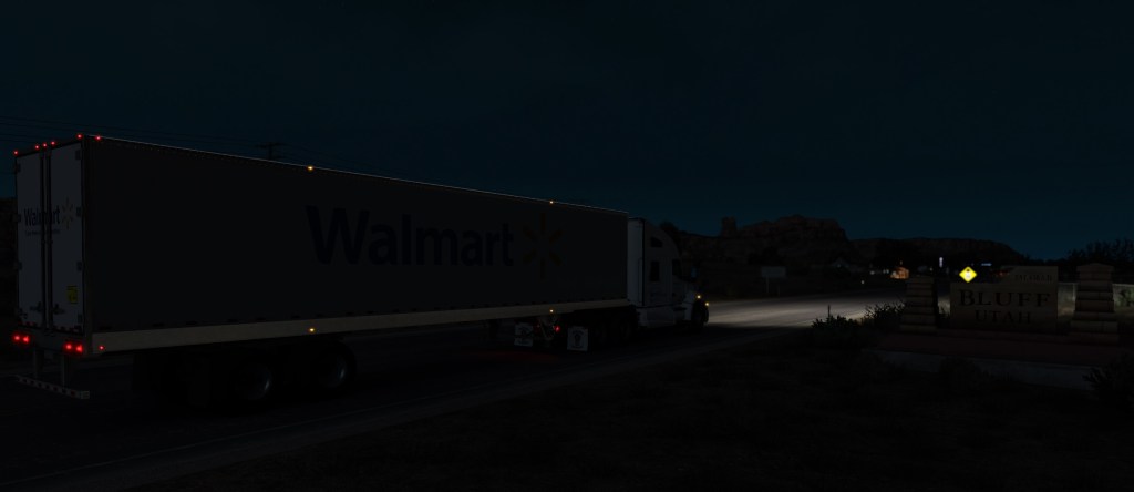 Die nächste dreiviertel Stunde blieb ich nun auf diesem State Highway, dann hatte ich Holbrook erreicht. Auf der Strecke kam mir auch der Kollege entgegen, der mein Double zerlegen wollte. In Holbrook angekommen, machte ich einen Zwischenstopp an der örtlichen Chevron Tankstelle am Navajo Boulevard. Hier konnte ich auf Techron Karte meine Tanks wieder füllen. Es gab Diesel für den Kenworth und Kaffee für mich. Nachdem der Durst von Truck und mir gestillt war, ging es weiter. Zu meiner Überraschung sollte ich nun in Richtung Osten auf die Interstate 40. Ich hatte eher damit gerechnet, in Richtung Flagstaff fahren zu müssen und dann in Richtung Page weiter. Der Technische Navigator kannte sich in Arizona aber sicher besser aus als ich. So folgte ich der Anweisung und fuhr in Richtung Albuquerque weiter. Für knapp 46 Meilen blieb ich auf der Interstate, dann hatte ich die Ausfahrt mit der Nummer 333 erreicht. An der Triple Three Tauschte ich die Interstate gegen die US-Route 191 in Richtung Norden oder Ganado. Die Landschaft war karg und eintönig, genau wie die Fahrt über den Highway. Der einzige Unterschied zur Interstate vorher war die Anzahl der Spuren nun hatte ich einen Single Lane Highway. Nach 38 Meilen hatte ich Ganado erreicht. Damit mal was passierte, durfte ich links abbiegen. Die US-191 teilte sich den Track nun mit der AZ-264. Sechs Meilen später trennten sich die Tracks an einem Kreisverkehr wieder. Ich folgte weiter der US-191 in Richtung Norden. Auch die nächste Stunde ging es durch karge, hügelige Landschaft. In der Siedlung namens Round Rock, die aus einer Handvoll verstreuter Häuser bestand, bog ich mal wieder links ab um dem Highway 191 weiter zu folgen. Eine halbe Stunde später, es dämmerte inzwischen, traf die US-191 auf die US-160. Hier ging es rechts ab. Nach zweieinhalb Meilen trennten sich auch diese Highways wieder voneinander. Ich bog links ab und folgte dann wieder der US-191 N. Kurz darauf verkündete mein Navi: „Crossing border – entering Utah – changing Timezone“, wobei letztere Äußerung nur im Sommer galt. Aktuell blieb die Zeit bei Mountain Standard Time.