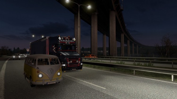 Sandra lässt den Hauber entspannt bei Tempomat auf 85 km/h rollen. Wie üblich haben wir im Hintergrund Musik laufen. Plötzlich wird unsere Ruhe vom CB-Funk unterbrochen: ”Hi Kollege. Schönes Leuchtenensemble. Solltest du weiter Richtung Münsterland fahren lass dich nicht vom Baumann aufhalten.” ”Danke fürs Lob. Für den Herrn habe ich keine Zeit”