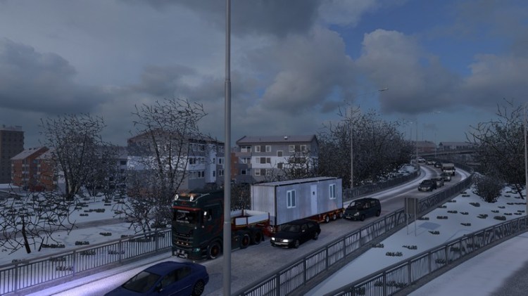 Ich verlasse die E22 am Trafikplats Ölandsleden und wechsele auf die Route 137. Es geht durch Kalmar zur Ölandsbron. Ich fahre über eben diese und erreiche den Trafikplats Fårjestaden. Es fängt an zu schneien. Zum Glück ist es nicht mehr weit bis zum Ziel. Ich denke kurz an den Schreckmoment vorhin in Stockholm zurück. Das hätte auch schief gehen können…