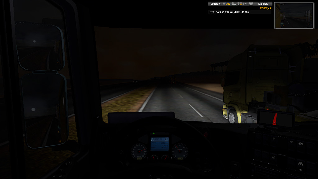 Trotzdem war mir auch dort nicht so ganz wohl, denn ich fuhr auf einer normalen Landstraße und die Nacht rückte näher. Pascal hatte mich damals gewarnt, Julian und Marlon hatten ihren alten Truck zur Festung ausgebaut und wollten das auch mit dem Premium. So ungefährlich konnte es also nicht sein und ich hatte nichts angebaut, was mich oder meinen Truck vor den Gefahren der Nachtfahrt schützen konnte.