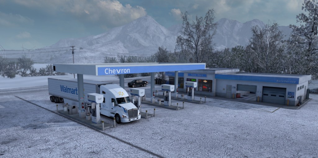 Nach dem Mittagessen ging ich noch ein paar Schritte zur Verdauung über den Parkplatz und schaute mir die Trucks der Kollegen an. Rein von der Optik mochte ich ja die Klassiker lieber. Der praktische Nutzen war bei den modernen Trucks aber erheblich besser. Das galt nicht nur beim Verbrauch. Auch die Übersicht und das Platzangebot war bei den modernen Trucks besser. Wobei mein T680 inzwischen auch schon in die Jahre kam. Die Nachfolger standen aber bei beiden Paccar Marken in den Startlöchern. So gab es sowohl beim Kenworth T680, als auch beim Peterbilt 579 die 2021er Modelle, die mit neuer Aerodynamik, besserer Beleuchtung und voll digitalen Cockpits die Käufer zurückgewinnen wollten, die zeitweise abgewandert waren. Sehr skurril fand ich dann auch das Angebot von Peterbilt, den 389 mit einem digitalen Cockpit auszurüsten. Aber irgendwie hatte man das große Display einfach in das alte Armaturenbrett, welches man noch vom 386 kannte, hineingebastelt. Das passte meines Erachtens gar nicht zusammen. Alte Kabine, eng und möglichst noch mit geteilter Windschutzscheibe. Dazu dann ein modern gestaltetes Display. Wenn man die Ansicht wenigstens im Stil der bei den Klassikern beliebten Rundinstrumenten gestaltet hätte, wäre mir das noch halbwegs plausibel gewesen.