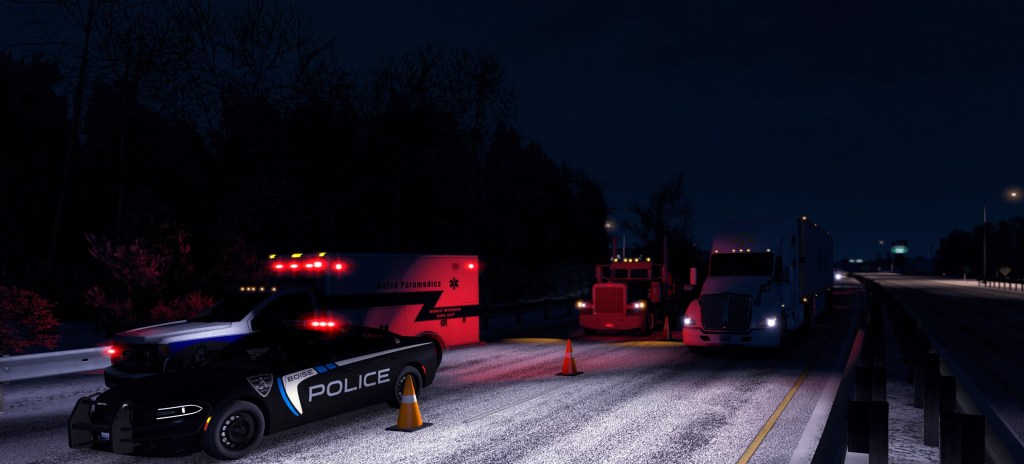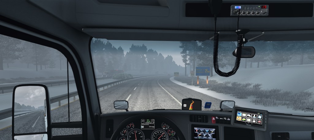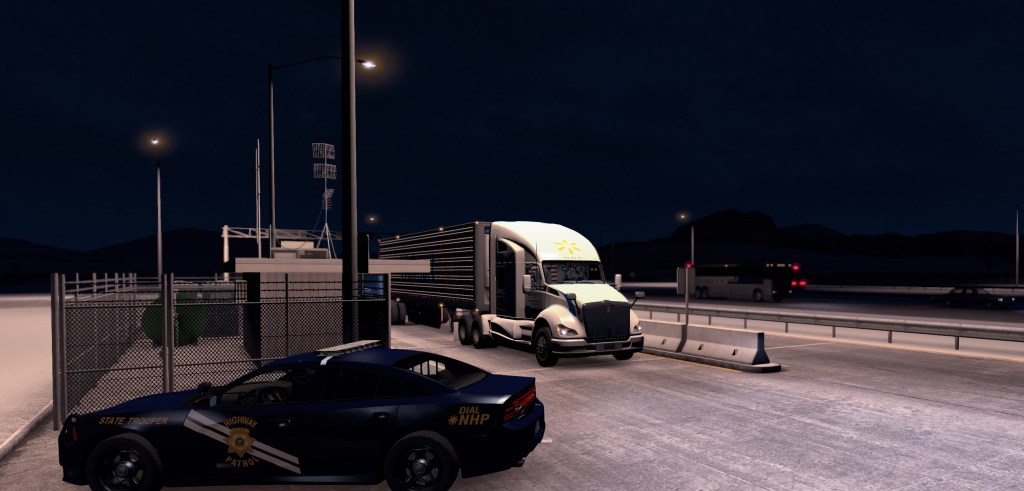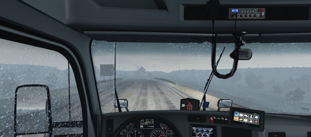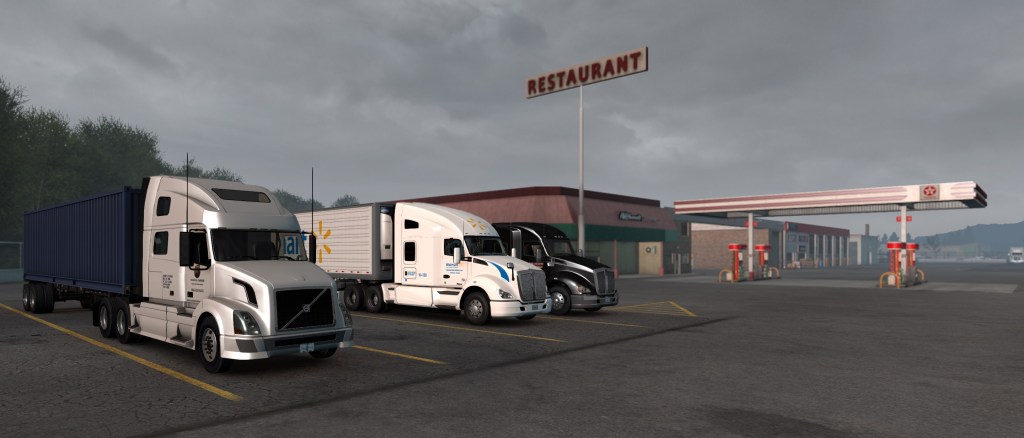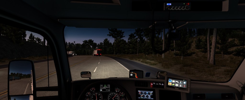 Es dauerte dann auch nicht mehr allzu lange, bis der Truck wieder repariert war. Der Test auf Dichtheit des Systems war dann auch erfolgreich. Ich fuhr aus der Wartungshalle und sattelte den Trailer wieder auf. Dann ließ ich mir die Reparatur bescheinigen. Ebenso bescheinigte der Mechaniker mir, dass er aufgesattelt hätte und ich daher meine Pause nicht unterbrochen hätte. Schließlich machte er alles dicht und fuhr wieder nach Hause. Ich machte mir im Sleeper noch ein paar Sandwiches als Abendessen fertig und schaute beim Essen noch etwas YouTube. Danach legte ich mich zum Schlafen hin.