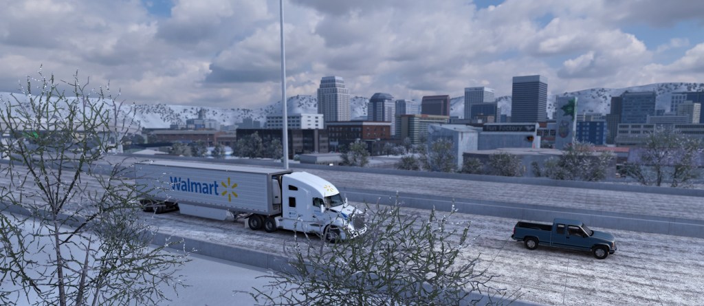 Nach beendeter PTI machte ich mich auf den Weg nach Colorado. Dort, in den Bergen, wäre es sicher auch nicht besser. Ich fuhr in südlicher Richtung auf die N Can Ada Road und kreuzte die US-26. Als ich von Meridian nach Nampa wechselte, wurde die Straße zum N Idaho Center Boulevard. Am Walmart Supercenter, wo ich gestern abgeladen hatte, vorbei, ging es zur Interstate 84. Diese nahm ich ostwärts in Richtung Boise. Nach 15 Meilen hatte ich die Hauptstadt Idahos erreicht. Sollte ich bis jetzt noch nicht gemerkt haben, dass es stellenweise recht glatt war, wurde man spätestens nun darauf aufmerksam. Grund dafür war ein Kipper Fahrer, der wohl ins Schleudern gekommen war und seinen Hinterkipper in einen Seitenkipper verwandelt hatte. Trailer und Ladung lagen nun auf der frostigen Interstate. Ob das gut für den Montagmorgenverkehr in Boise war, stand auf einem anderen Blatt.