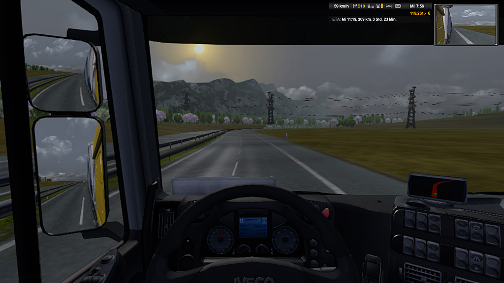 Er hatte die Zeit auf dem Beifahrersitz als Fahrtunterbrechung in das Gerät nachgetragen und fuhr vorsichtig los. Aber schnell fühlte er sich sicher und fuhr den Truck aus. Schließlich traute er sich ans Überholen.