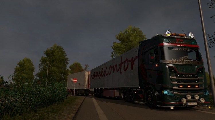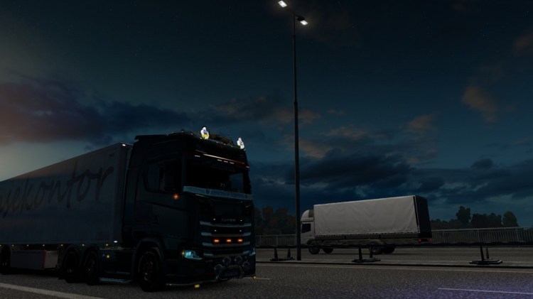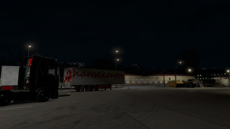 Es ist kurz vor 22:00 Uhr und ich stelle meinen Zug auf mein Werkstattgelände. Den B-Double sattele ich ab, stelle den rovfågel daneben und platziere noch fix ein paar Lübecker Hütchen.