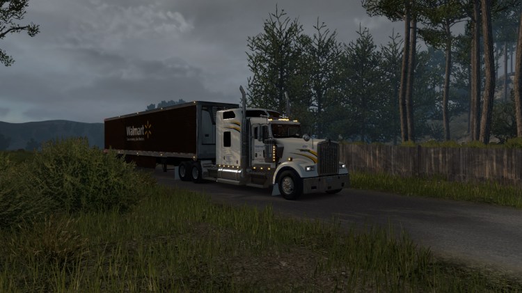 Dann folgte ich den Beiden nach draußen. Wobei ich erst auf dem Parkplatz ankam, als bei ihnen der Motor des Trucks schon lief. Als ich an meinem Truck ankam, sprachen wir noch kurz über die Vorzüge des jeweiligen Trucks, standen hier doch Klassik und Moderne Seite an Seite. Auch wenn beide Zugmaschinen noch sehr neu waren. Aber letzten Endes wurde es dann doch langsam Zeit zu starten, nicht das es noch hieß „Die Owner Operator stehen nur auf dem Hof und quatschen.“ Wir sattelten dann auf und machten noch schnell die PTI.