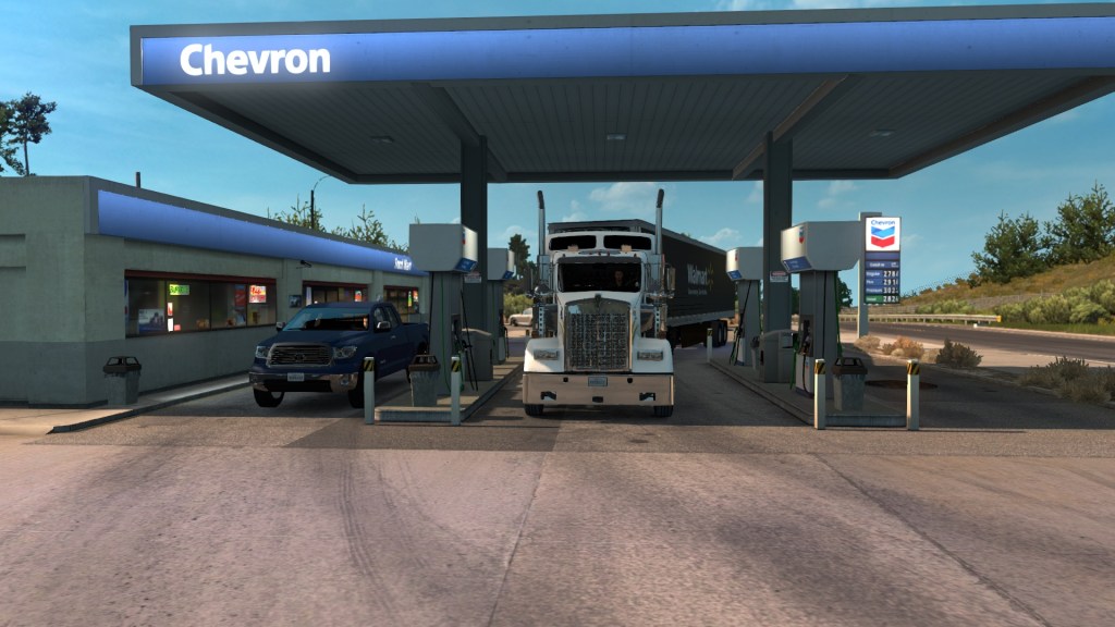 Außerdem sollte ich noch eine Tankstelle erreichen. Die Fahrt über diese Strecke hatte viel Sprit gekostet, da ich mich manchmal dafür entscheiden musste, dass Lenken wichtiger war, als schalten. Außerdem hatte ich ja letzte Woche in Arizona das Tanken vergessen. An einer kleinen Tankstelle am Highway 1 hielt ich also noch zum Tanken an. DEF hatte der Inhaber nicht, aber immerhin genug Diesel. DEF hatte ich aber auch noch genug im Tank. Ich stellte mich wieder mittig, so dass ich beide Seiten gleichzeitig tanken konnte. Während des Tankens konnte ich feststellen, dass mein Truck doch geringfügig größer war, als ein Pickup.