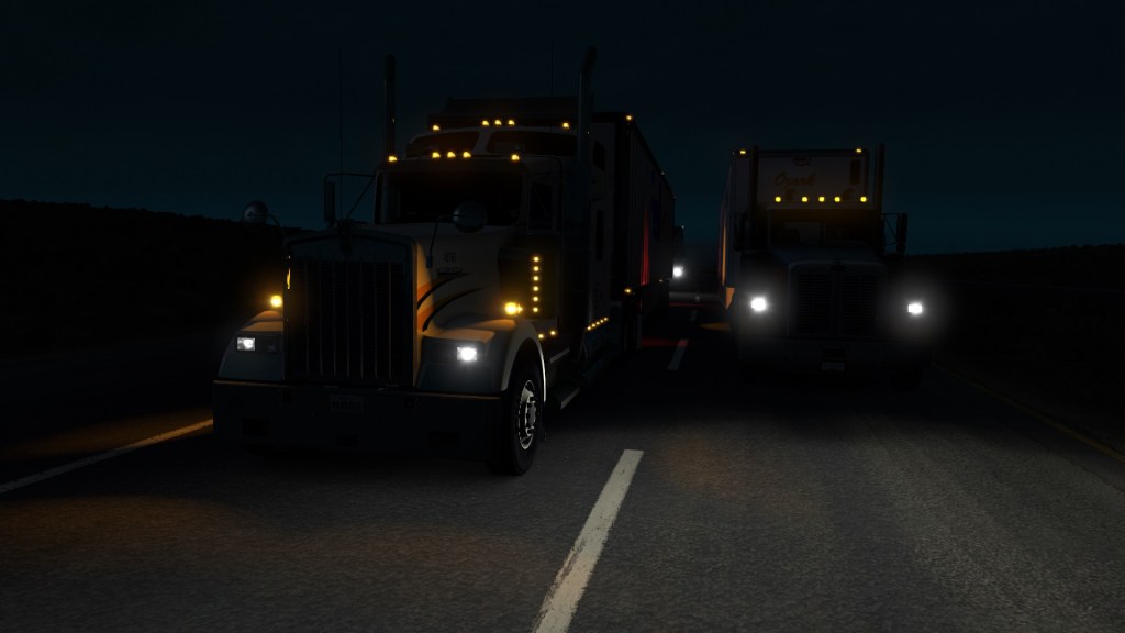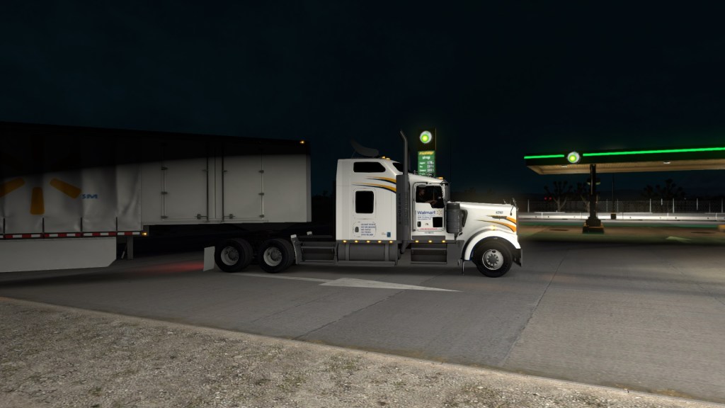 Eine Stunde nach dem Klingeln des Weckers machte ich mich auf den Weg. In letzter Minute fiel mir wieder ein, dass mein Kenworth ja noch bei Ricks Werkstatt stand. Also zur Werkstatt und nicht zu meiner Halle. Dort angekommen, parkte ich den Ford zuerst neben meiner Zugmaschine und holte mir den LKW Schlüssel in der Werkstatt ab. Viel sah ich im Halbdunkel von meinen Neuerungen nicht, das musste ich mir später im Hellen ansehen. Ich räumte die Sachen in den Kenworth und parkte den Ford auf einem der PKW Parkplätze. Eine Viertelstunde vor Mitternacht begann ich mit meiner PTI.
