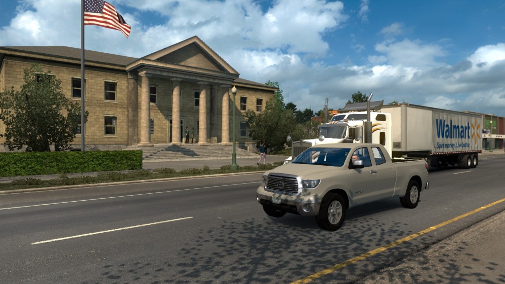 Über die Interstate sollte es erstmal nach Carson City gehen. Nun konnte ich den Kenny wieder auf 70 mph beschleunigen. Das ging jetzt auch leichter, als am Morgen, wo ich den schwereren Reefer dran hatte. Außerdem ging es nun wieder richtig in die Wüste. Genauer gesagt ins große Becken. Entsprechend löste sich auch endlich das diesige Wetter auf und die Sonne kam zum Vorschein. So machte das Arbeiten wieder Spaß. Etwa nach eineinhalb Stunden erreichte ich Carson City und somit die Hauptstadt Nevadas. Dort folgte auch der Wechsel von der I-580 auf die Route 385. Über die ging es im Prinzip auch schon durch die Hauptstadt, die einen Interessanten Wechsel von den üblichen Holzhäusern zu einigen sehr wichtig aussehenden Gebäuden bot.