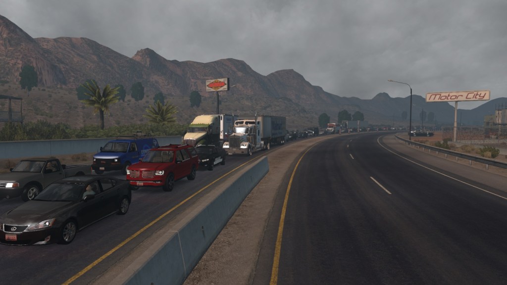 Jetzt hatte ich es nicht mehr weit. Nun näherte ich mich Kingman. Dabei bekam ich das ab, was mir heute Morgen in Las Vegas erspart geblieben war. Noch bevor ich die Stadt richtig erreicht hatte, stand ich in einem kilometerlangen Stau. Außerdem gab es für Trucks auch keine Möglichkeit den Stau zu umfahren. Es blieb mir nichts anderes übrig, als im Stau stehen zu bleiben und immer nach und nach aufzurücken.