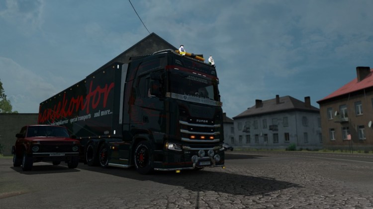 Die Übergabe der Fracht an Vlad hatte Problemlos funktioniert – wir haben einfach die Trailer aneinander gestellt und mittels Vlad’s Hubwagen die Paletten