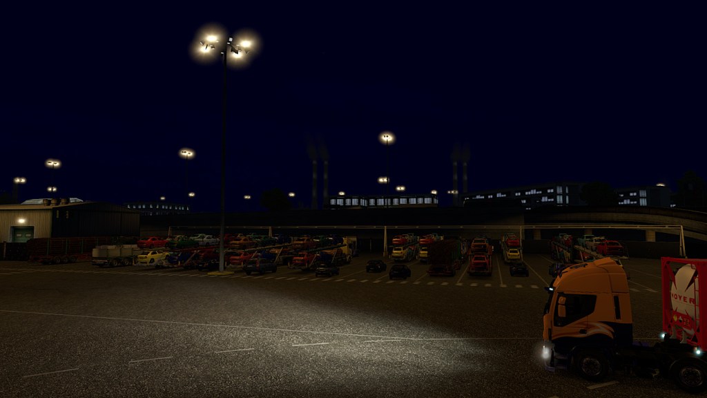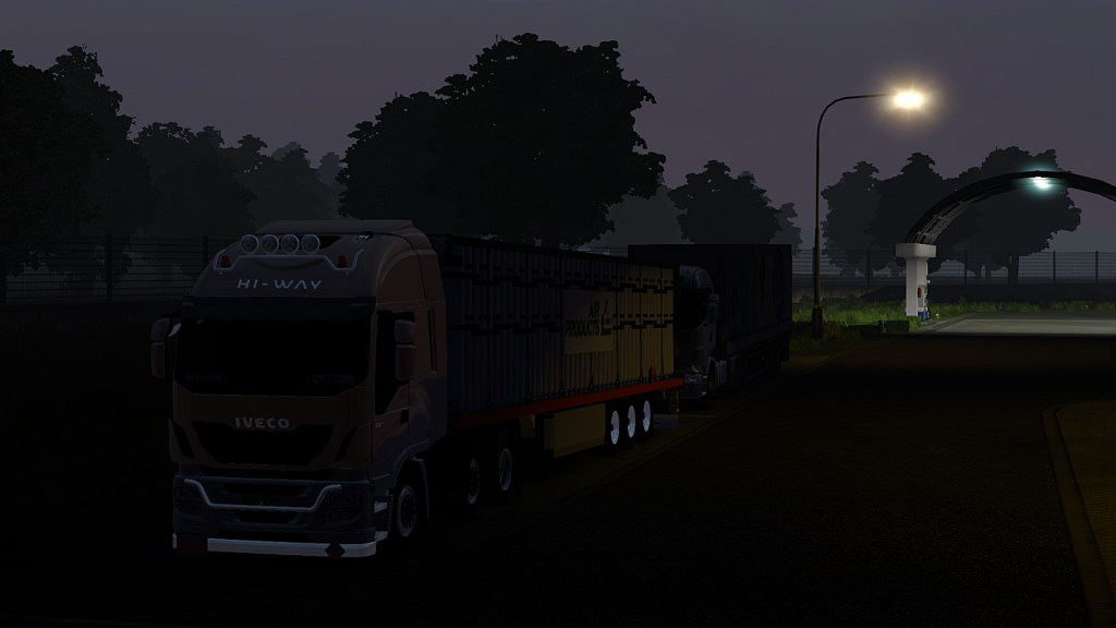 Als Chris und ich den Stralis Hi-Way bereit machten und Julian sich schon mal im alten Stralis einrichtete, kam auch Ilarion von der S-Bahn rauf gelaufen. Während wir gegen halb sechs vom Hof rollten, arrangierten sich die beiden im Fahrerhaus, das ja, wie ich letzte Woche wieder gemerkt hatte, noch kleinere Staufächer hatte als unseres.