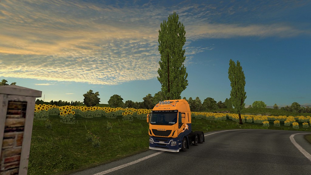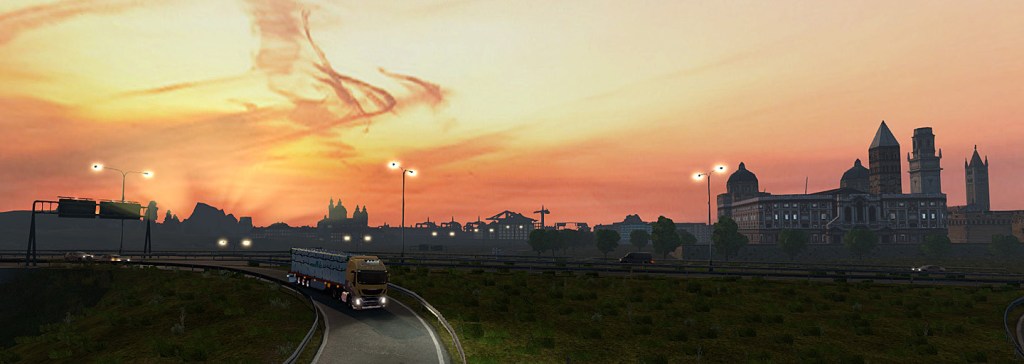 Außerdem gab es einen Wettbewerb für Ladebildschirme. Die in den letzten Kapiteln schon manchmal eingebundenen, besonders flachen und breiten Bilder wurden dafür erstellt und haben das von SCS für Ladebildschirme festgelegte Format.