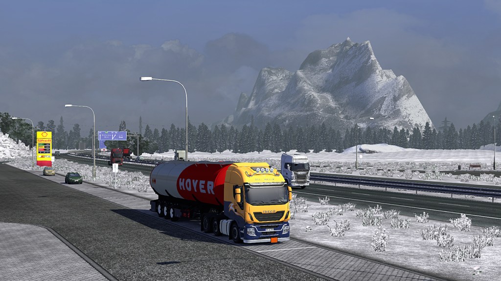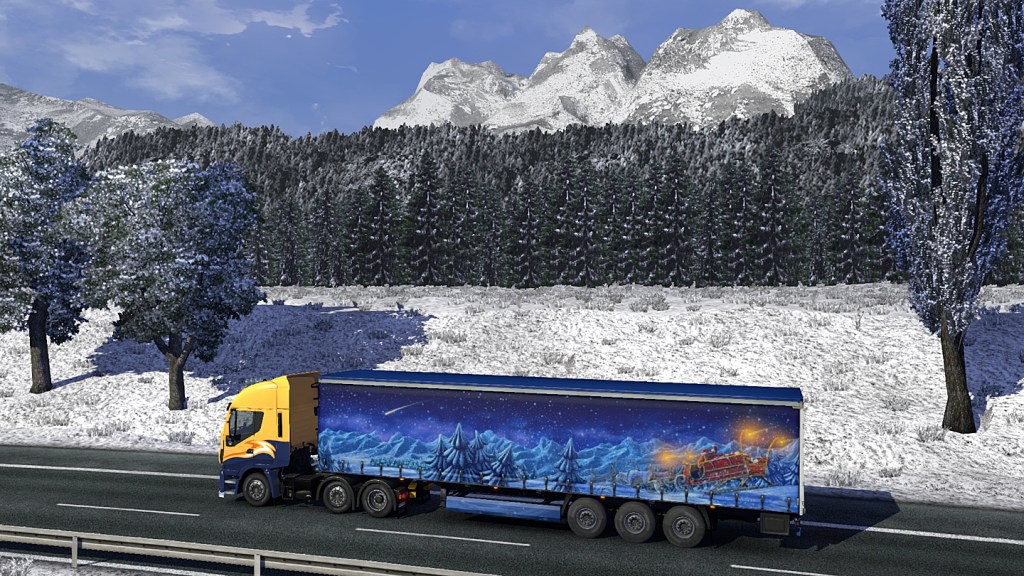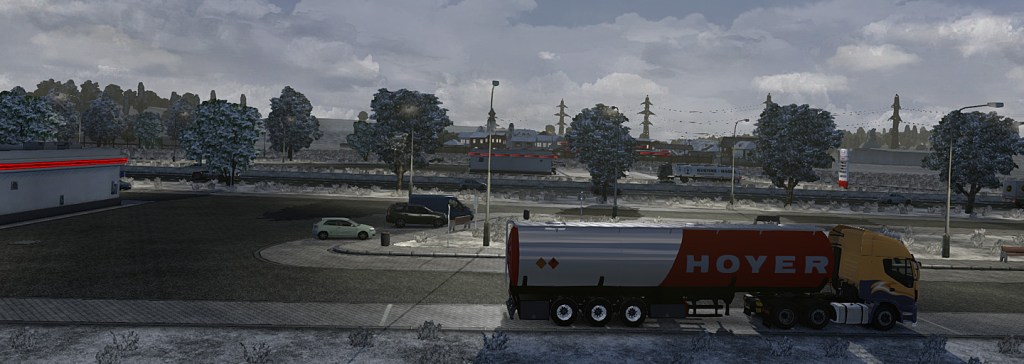 Genau darauf lief es nach einem kurzen Telefonat mit der anderen Niederlassung hinaus, mit viel Bitten und Betteln wurde ich um den See geschickt. Auch bei Hellmann war noch nicht jeder Sondertrailer seine Weihnachtsplane schon wieder los und so hatte ich bald darauf einen Schlitten im Winterwald hinter mir hängen.