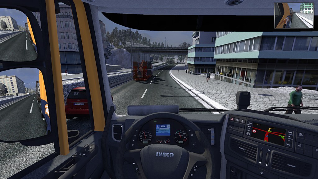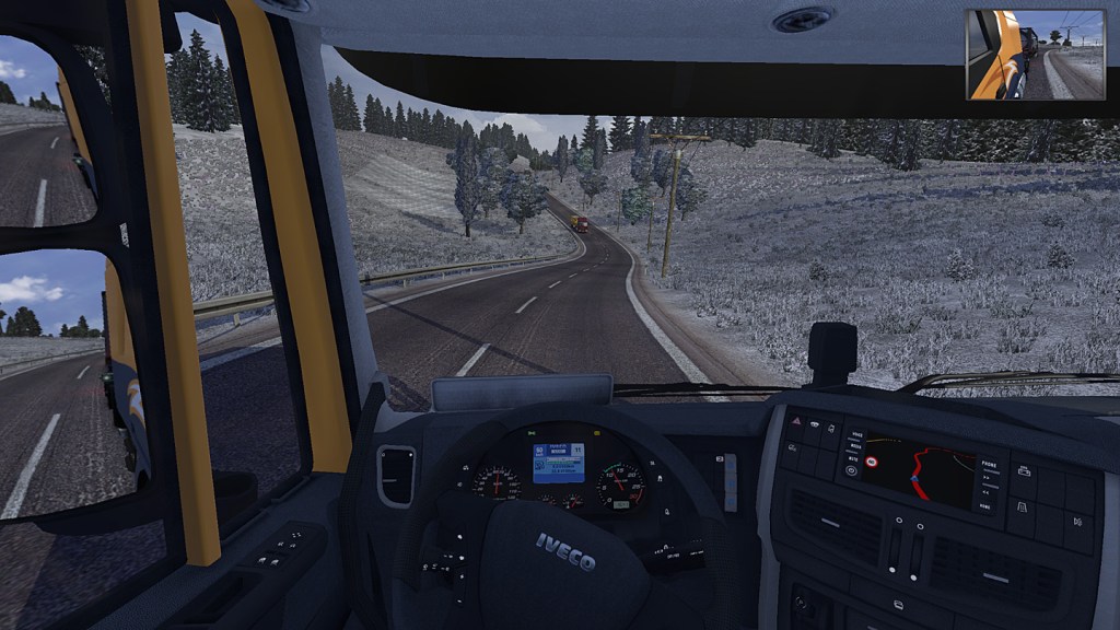 Nach dem Frühstück wollte Patrick dann doch mal in meinem Serien-Iveco Probe sitzen. Die Hintergrundmusik war dann Eric Saades „Popular“, Schwedens Beitrag vom ESC2011. Also billiger Eurodance in Reinkultur, aber was soll’s. Mir musste die Musik gefallen und da waren außerdem weitaus peinlichere Sachen drauf.