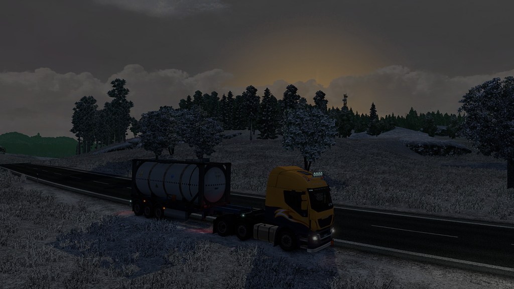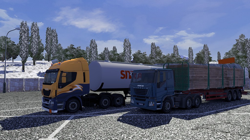 Ich holte eine Fuhre Lösungsmittel für Dänemark in Gelsenkirchen ab und kam ohne Probleme durch Schnee gut voran in Richtung Norden. Hinter Bremen musste ich rasten und es kam zu einem Zusammentreffen der beiden Iveco-Extreme, neuer Hi-Way und alter Stralis mit Flachdach.