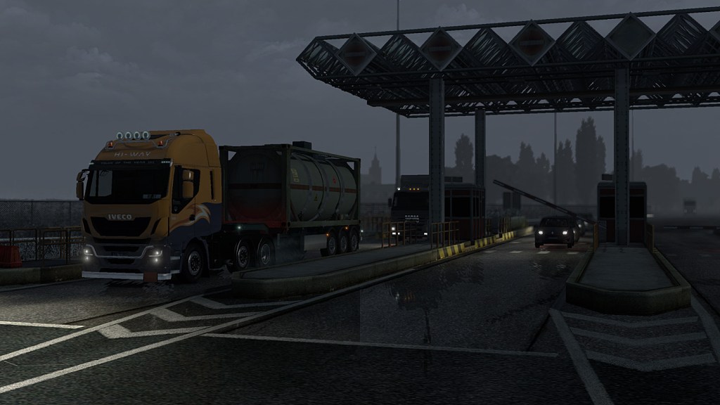 Nach dem Eintritt musste ich auch den Austritt aus dem Straßennetz von Seeland bezahlen. Was ich da im Rückspiegel hatte, konnte ich nicht ausmachen, aber es war ein Exoten-LKW.