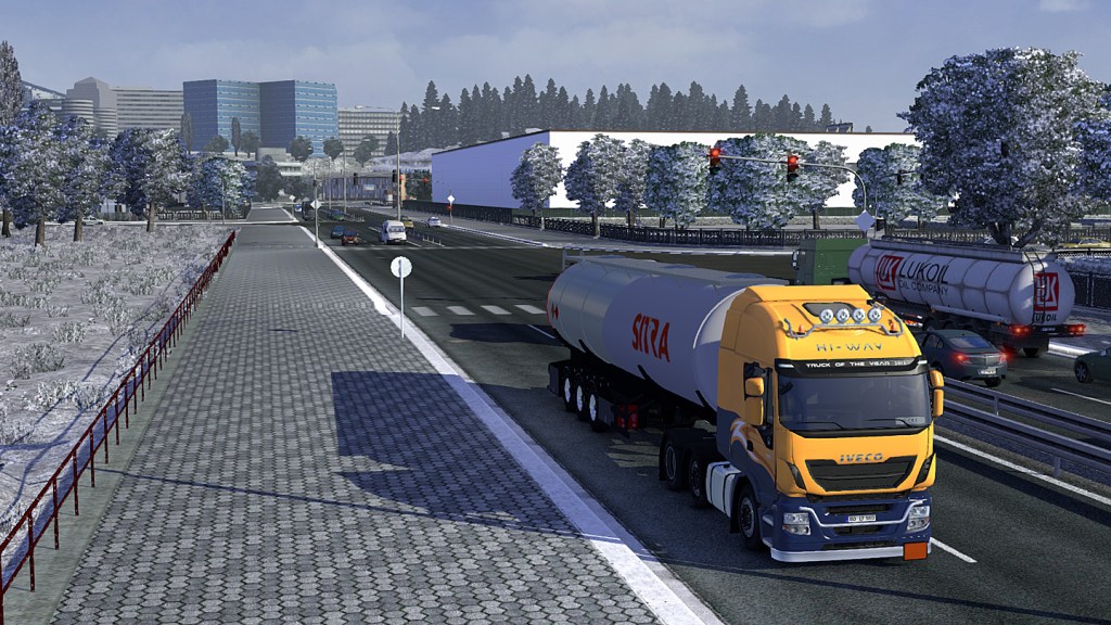 „Jo. Du hast ja Gefahrgut. Hmm, 83 machste mit?“ „Ja. meinetwegen. Sei nur gnädig mit meiner „Einsteigermotorisierung“ bergauf. Außerdem habe ich 23 Tonnen Bleisulfat in dem Fass, also fast voll ausgelastet.“