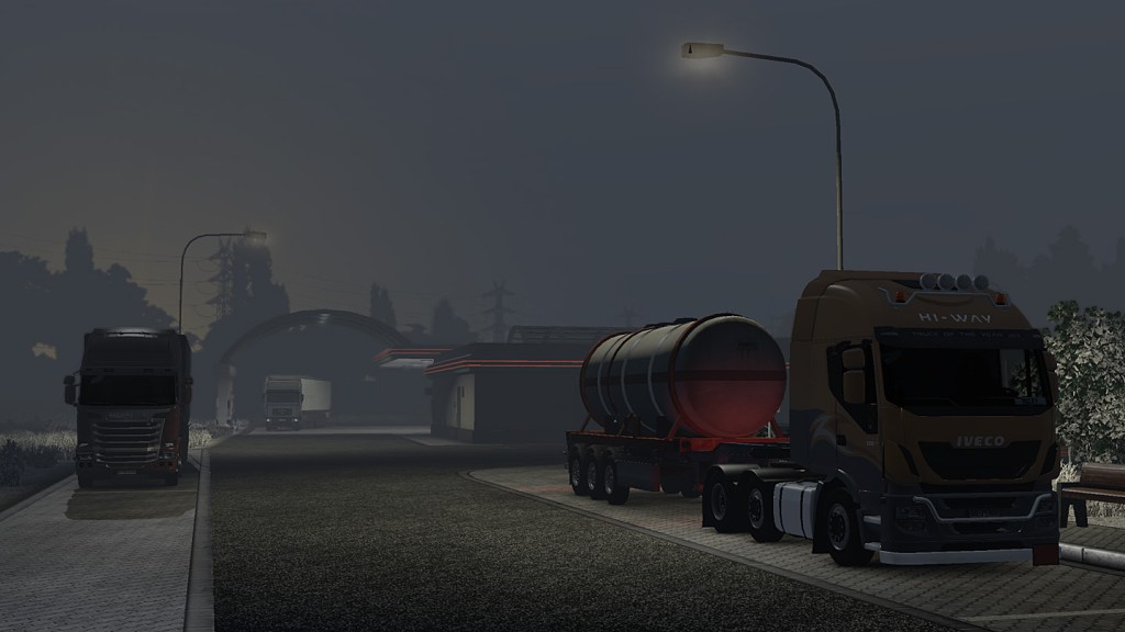 Immerhin kam Julian inzwischen auf den Hof und ich ging runter, um den Truck sauber zu machen. Timo und Ilarion hatten es gleich geschafft, ihre beiden Trucks jeweils im Teamwork sauber zu bekommen. Weil Julian sofort aufgebrochen war und Marlon nach der heutigen Solo-Tagesrunde alleine beim Putzen hatte stehen lassen, hatte ich dem geholfen und bekam wenigstens jetzt zum Dank auch seine Hilfe beim Hi-Way putzen.