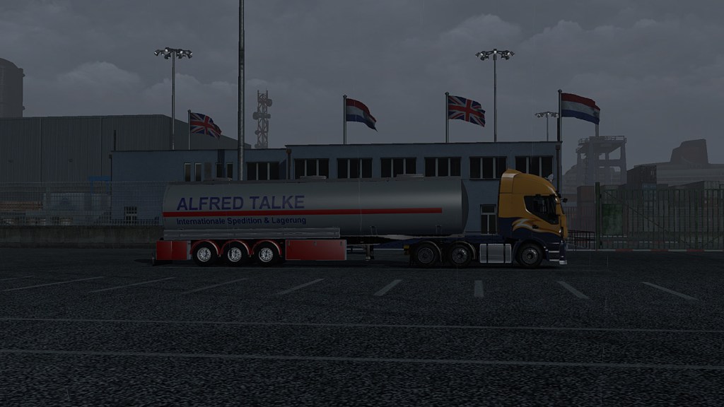 Es ging doch länger als erwartet nach Grimsby, der Vorteil auf eine Fähre nach Hull lag bei gerade mal 30 Minuten oder so. Als ich dann im Hafen von Harwich mein Gespann fotografierte, fragte ich mich, ob das Viereck, in dem Alfred Talke Junior springen würde, wenn er den Trailer sah, noch ins Stadtgebiet von Hürth passte. Der schien sich allen Versuchen, ihm die kursive Schrift und „Logistic Services“ aufzulackieren, erfolgreich widersetzt zu haben. Er trug immer noch stolz sein „Alfred Talke Internationale Spedition & Lagerung“.