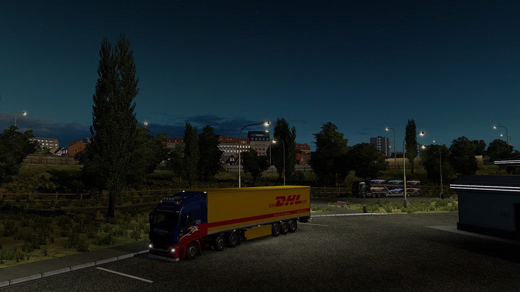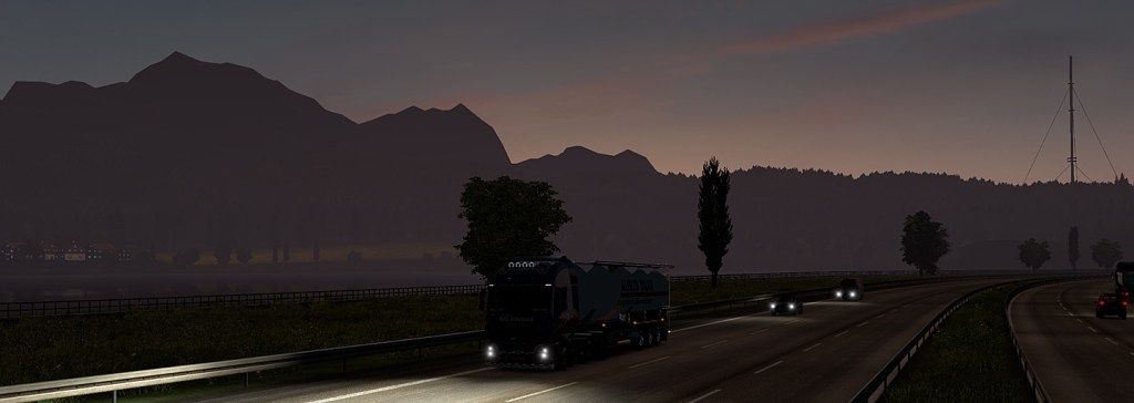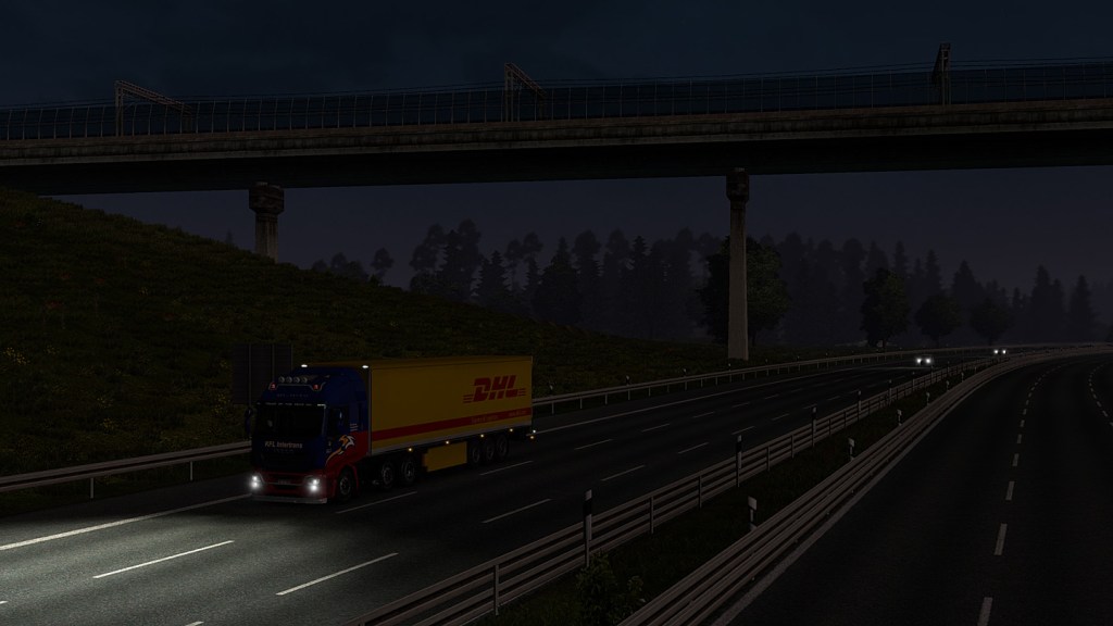 Wir hatten über die Tage einigen Spaß und die Abfahrt um 21 Uhr war ein Erlebnis. Alle Trucks fuhren mit voller Festbeleuchtung ab. Auch wir ließen die Warnleuchten blinken. Die Kolonne zog sich die A3 entlang und dünnte sich an den Abfahrten langsam aus. Würzburg mussten auch Dominik und ich runter, einen Isotrailer mit Schokolade abholen. Kurz nach 22 Uhr zogen wir wieder auf die A3 und rollten Frankfurt entgegen in die Nacht.