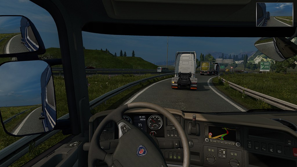 Das Tagesziel war, hinter Nürnberg zu kommen. Das war mit dem Scania und seinem Motor kein allzu großes Problem. Er schaltete sich durch einen gefühlt eher kleinen nutzbaren Drehzahlbereich einen zurecht, aber Kraft genug hatte er, um auch am Berg voran zu kommen.