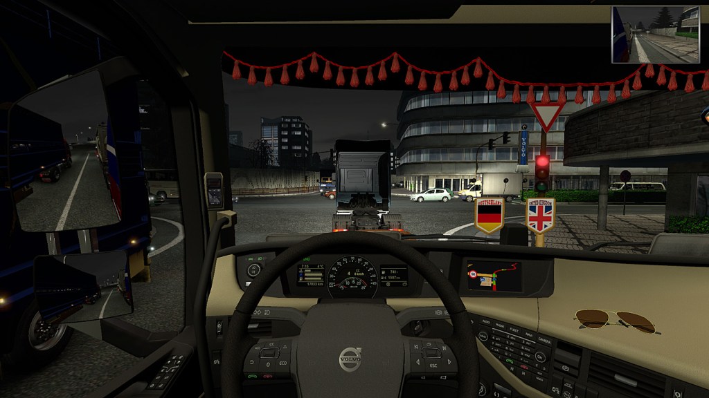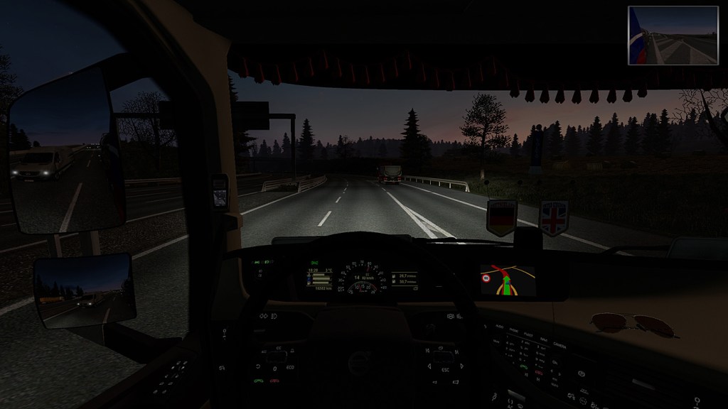 Der Tag stand im Zeichen des Kilometerfressens. Es ging einmal durch Deutschland bis in den Fährhafen in Rostock. Einzig ein Markenkollege benutzte wohl die Spiegel nicht und zog Luke kurz vor Berlin vor die Nase, um einen altersschwachen Scania zu überholen. Der Abstandsassistent sah sich dadurch veranlasst, voll in die Eisen zu gehen. Bei unserem anschließenden Überholmanöver gab es dafür zum Dank den doppelten Fernfahrergruß.