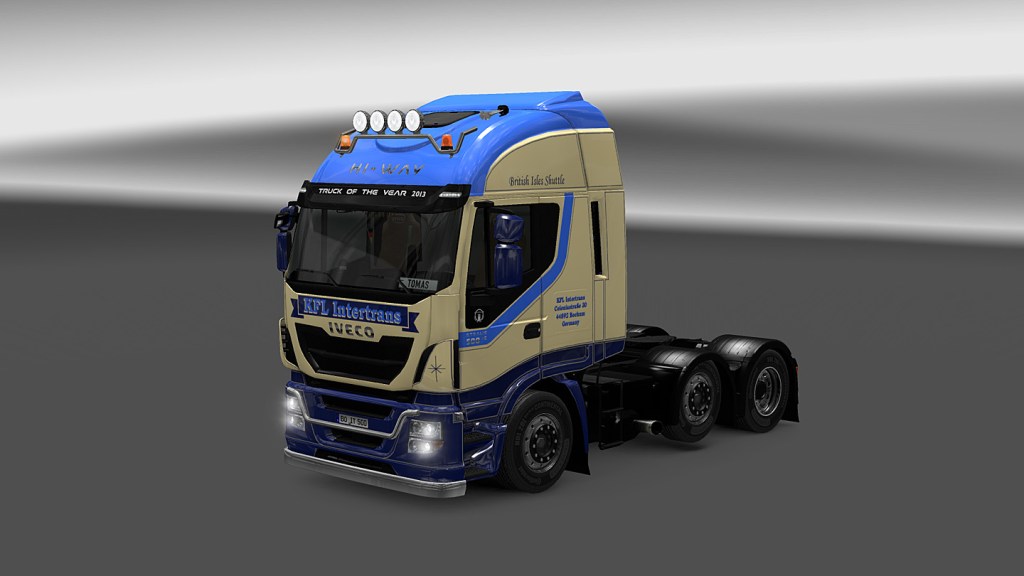 Fahrzeughistorie: Um nicht nur Stückgut, sondern auch Lebensmittel von und nach Großbritannien zu transportieren, wurde direkt zum Start ein zweiter LKW für den neuen Geschäftsbereich beschafft. Nachdem die Entscheidung gefallen war, nur noch bei zwei Händlern zu kaufen, was nach der Auswertung aller Angebote die Marken-Auswahl auf Volvo, Renault (gleicher Händler) und Iveco begrenzt hatte, fiel die Wahl wieder auf einen Iveco Stralis Hi-Way.