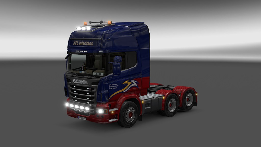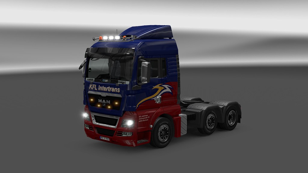 Fahrzeughistorie: Der Truck wurde Mitte 2014 bei der ersten Erweiterung der kurz zuvor aus den Personengesellschaften Transportunternehmen Kaiser und Transinter Gebrüder Franke GbR gegründeten KFL Intertrans gekauft.