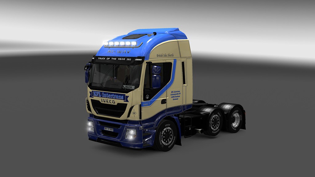 Fahrzeughistorie: Nach dem Start mit einem auf 363 PS frisierten Stralis AS310 und Flachdach kaufte Ricky sich für das damalige Transportunternehmen Kaiser einen wieder einmal getunten AS420 mit Hochdach. Das Fahrzeug fuhr er dann alleine und schließlich zusammen mit Chris. Nach einem Motorplatzer kam ein Motor mit serienmäßigen 450 PS rein und zuerst fuhr Ilarion den Truck, nach einigen Wochen tauschte er mit Julian und Marlon gegen den Renault Magnum. Zuletzt fuhr Julian den Truck alleine.