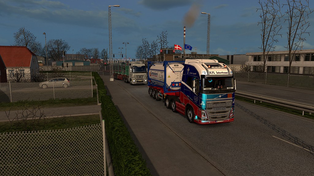 Gegen 14 Uhr rollten wir schließlich mit einem Tanktainer voll Lösungsmittel aus Frederikshavn in Richtung Autobahn. Unterwegs kam eine Nachricht von Steven: „Ein Drittel beladen. Danke!“