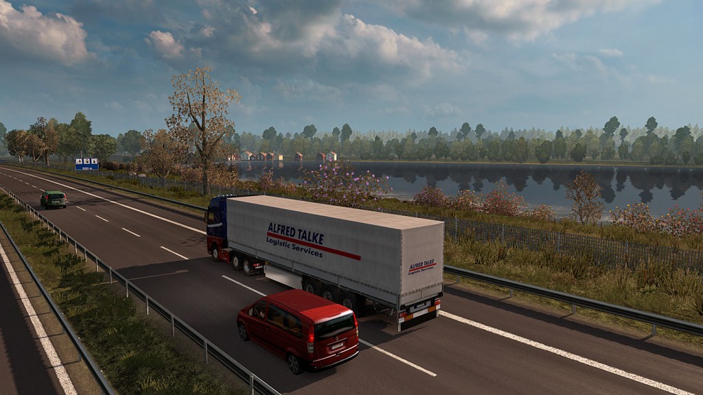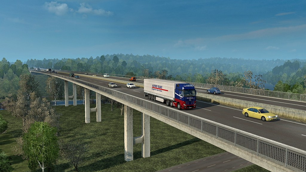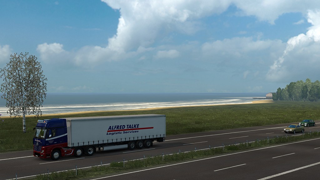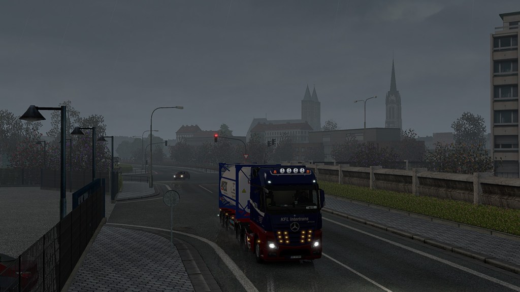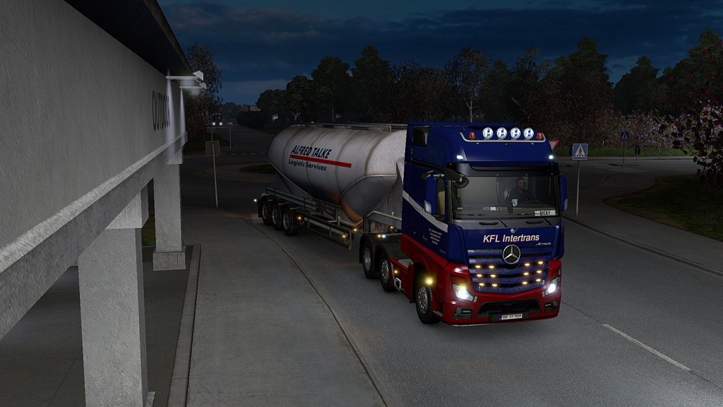 Nachdem ich nun Flachland und Mittelgebirge, Rampen zu Hochbrücken und steile Autobahnauffahrten durch hatte, musste ich sagen, dass der Actros 2558 ein Monster war. Noch mal stärker als unser FH16 550 und das brachte er auch auf die Straße. Leider brachte er das auch in den Tank, besonders wenn man mal verpennte, manuell in den 12. zu schalten, was mir mit dem leisen Motor nur zu oft passierte. Ilarion und Timo wohl nicht mehr, denn die hatten mit meinen Verbrauchswerten angefangen, aber waren inzwischen 3 Liter runter. Und im Gegensatz zu mir fuhren die dauernd Standlicht, wie ich von Bildern im Spotterforum wusste, damit die LED-Batterie dauernd leuchtete.
