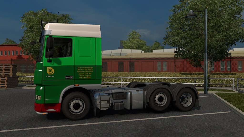 Nun ging es also los zur Spedition. Erst einmal das kleine Besteck, also nur wir drei. Für Duncan nahmen wieder Rebecca Duncan und Philip Knight teil. Wir fingen mit einem kleinen Rundgang an. Auf dem Gelände gab es eine Betriebstankstelle, einen Waschplatz und eine Werkstatt. Dazu kam eine Logistikhalle, daneben war noch Raum für eine Erweiterung, zum Beispiel ein Kühlhaus. Auf dem Platz stand eine Zugmaschine. Die Lackierung war klassisch, wenn auch ohne Zierlinien und außerdem ein Beweis, dass man Firmen kaufen konnte, aber keine Marken. Selbst wenn die Kunden treu waren. Wie viele MAN mit Büssing-Schriftzug und manchmal auch Iveco mit Magirus-Logo hatte ich schon gesehen. Hier ging es nahtlos weiter.