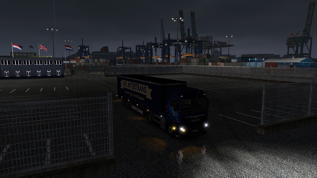 Ich legte noch eine Pause bei Breda ein, weil ich verkehrsbedingt zu lange gebraucht hatte, aus Neuss an Mönchengladbach und Venlo vorbei zu kommen, um es in 4,5 Stunden zu schaffen. Gegen halb 1 kam ich in Hoek van Holland an und stellte mein Gespann neben einen Scania mit Holz. Da dieses Ungetüm bestimmt keine gedämmte Kabine hatte, war ich mit einem Holzlaster rechts zumindest das Risiko von Thermo King in Stereo schon mal los.