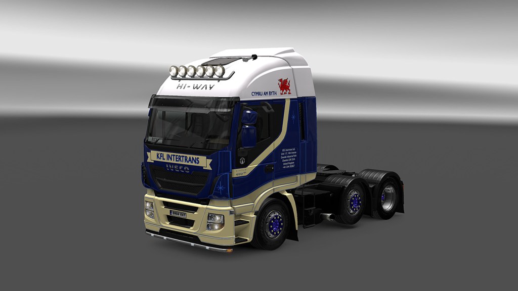 Ebenfalls 3 Trailer sind inzwischen von den neuen blauen des britischen Herstellers Dennison vorhanden. Einer läuft mit dem Union Jack DAF, die beiden anderen im Trailer-Exchange, zusammen mit zwei deutschen, bei denen die Farben