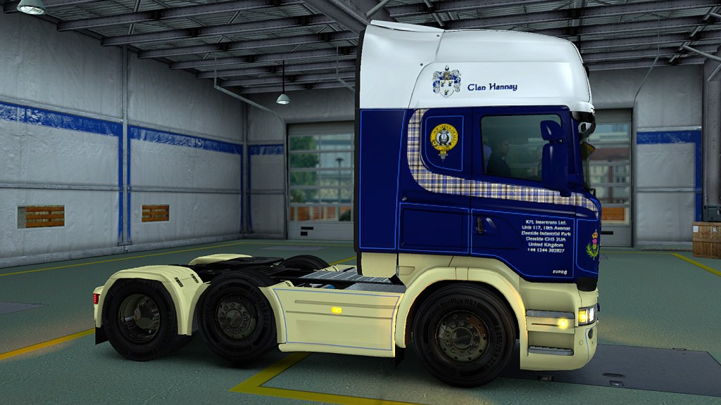 Es wurde hell in der Halle. Shawn ging um den LKW zur Fahrerseite und schlug die Hände vors Gesicht: „Oh mein Gott! Nicht nur der Tartan! Das Clanzeichen auch noch! Und der Clanname und das Familienwappen! Ich… ich bin sprachlos!“