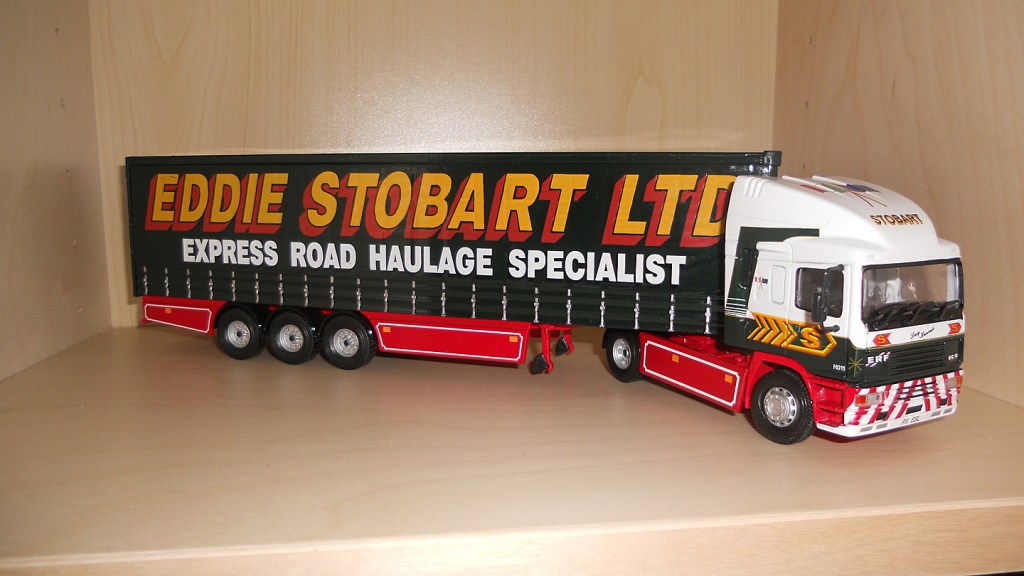 „Ja cool. Im Maßstab 12 Zoll je Fuß würde ich die auch mal gerne einen Tag lang ausführen. Aber wie kommst Du ausgerechnet auf einen Stobart ERF EC11?“ In Großbritannien wurde der Maßstab nicht als direktes Verhältnis angegeben, sondern als die Länge, die einen Fuß darstellte. Das dann aber auch metrisch. je nachdem ob Millimeter und Zentimeter oder Zoll ein besseres Ergebnis lieferten. Meine Modellbahn in Spur N war 2 mm je Fuß oder einfacher im „2 mm Maßstab.“ Dieses 1:50 Modell war also im britischen Maßstab 6 mm je Fuß und weil 12 Zoll 1 Fuß ergaben, war der „12 Zoll Maßstab“ schlicht und ergreifend eine scherzhafte Beschreibung unter Modellbauern für Originalgröße. Da Luke früher ferngesteuerte LKW in 1:16 gefahren war, kannte er das. Aber wie alle Spielzeuge verloren sie ihren Reiz, wenn man das Original hatte und deshalb baute Luke keine LKW-Modelle mehr, seit er in der Ausbildung zum Berufskraftfahrer auf die Abschlussprüfung zugesteuert hatte.