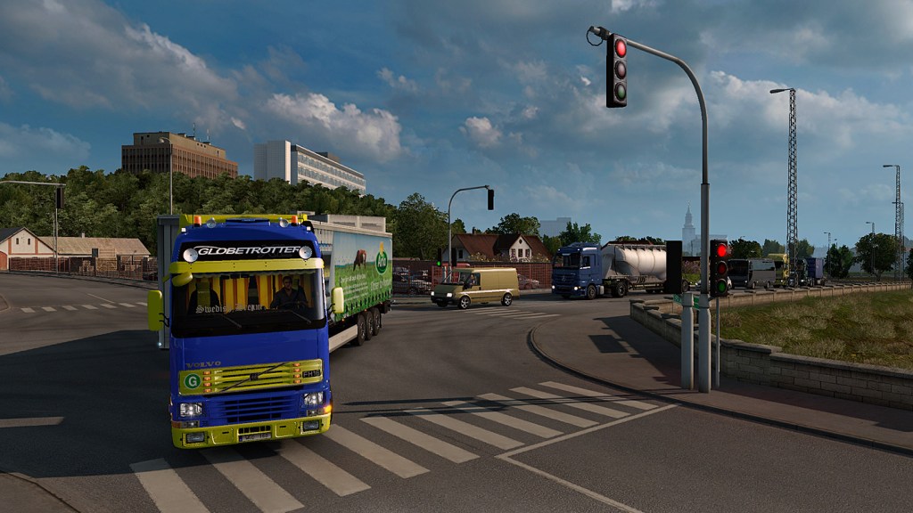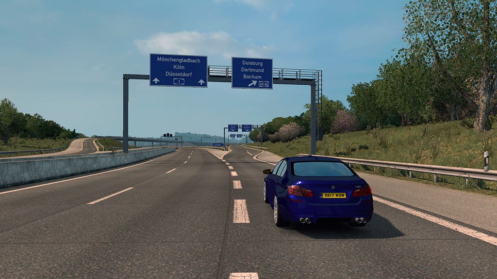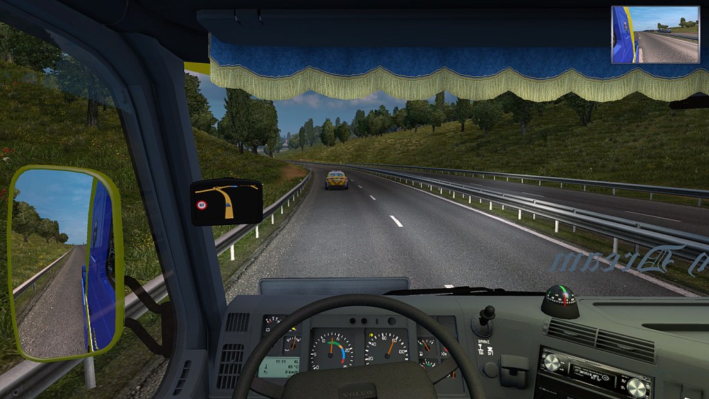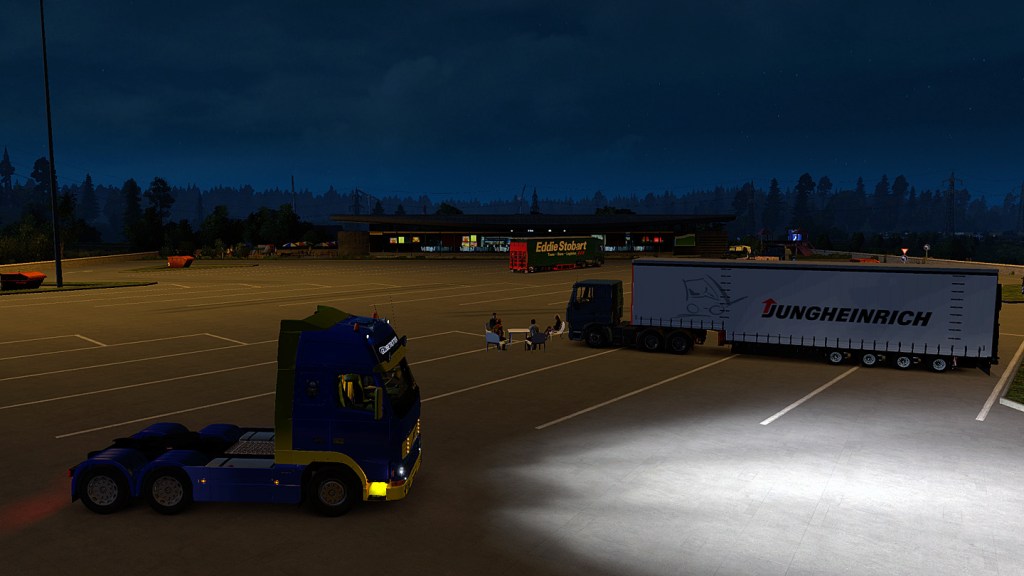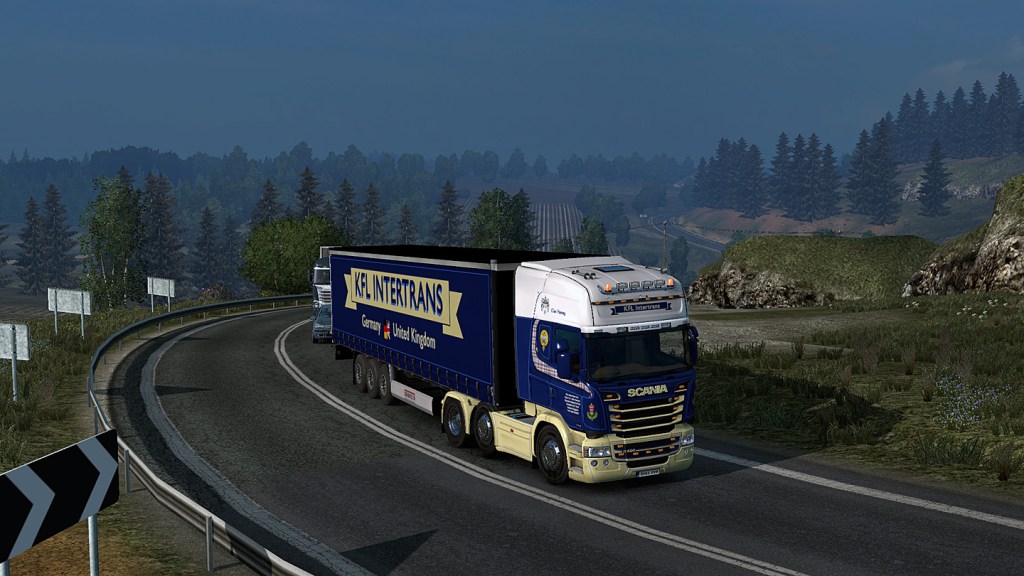 Als die Pause rum war, fuhr ich weiter und schaffte es dann an einem Anstieg, den Zorn der Leute hinter mir auf mich zu ziehen. Das Schaltschema von Scania war leider anders rum als bei ZF, was ich in unseren DAF und dem Iveco zuletzt nur noch gefahren war. Anstatt in der großen 4 zu landen, drückte ich den Schaltknüppel also gegen einen Widerstand, wo kein Gang war. Zwar war der Zug nicht so schwer, aber in der Steigung dann schwer genug, dass ich doch, bis ich wusste, wie mir geschah, stehen blieb und im 1. Gang wieder anfangen konnte.